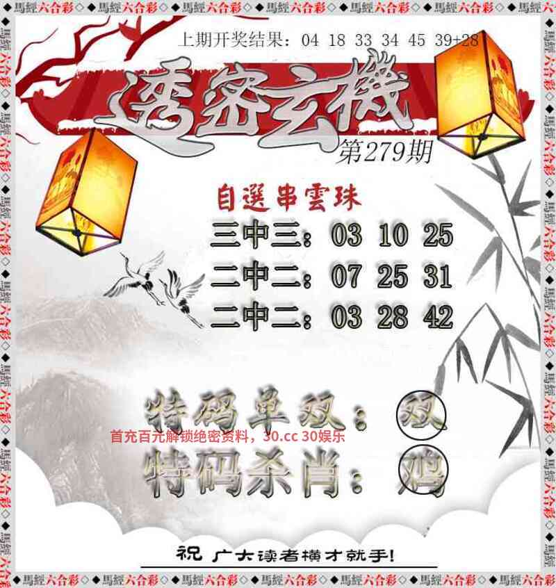 275期⑦码39.23.14.45.30.25.12开:鸡45中